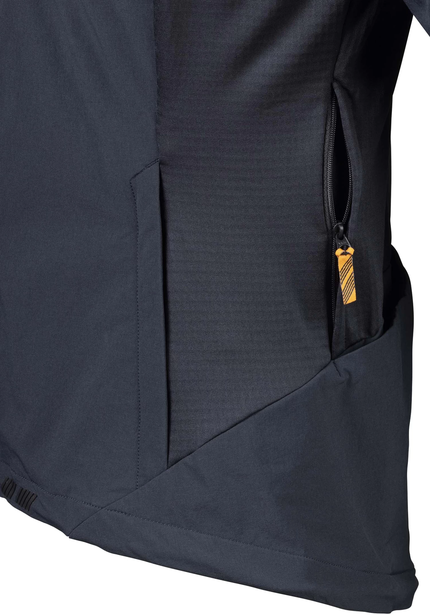 - Water and wind resistant shell material built with stretch for riding comfort
