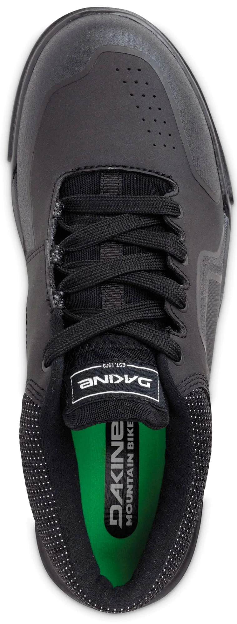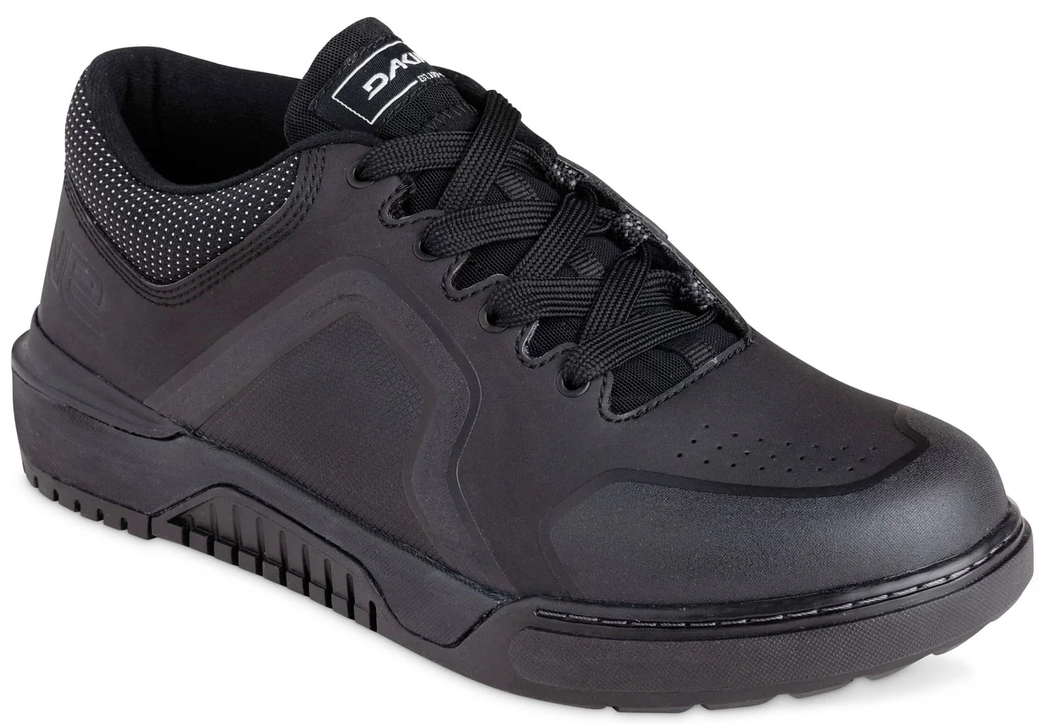 The 2022 Dakine Drift Flat Shoe is a modern mountain bike shoe designed for open-throttle performance with flat pedals. Proprietary DK FlexRide shank technology rides firm, secure and supported on the pedal, but flexes in the toe. Paired with a grippy outsole, on-bike energy transfer and off-bike mobility are harmoniously maximized. The durable PU upper features a perforated foam tongue for improved heat and moisture exhaust, while the reflective collar material provides additional safety in low visibility conditions.