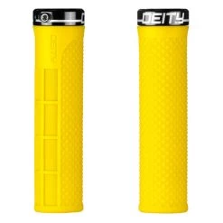 Overwhelming demand for a diamond version of the renowned Knuckleduster lead to the phenomenal feel of the Deity Components Lockjaw Grip. With sweeping transitions from the padded thumb area to the deep dish diamond top pattern to a recessed half waffle, the LOCKJAW delivers a technically precise feel from end to end. Utilizing a TRC+ rubber compound allows industry leading durability but delivered in a soft, plush and sticky durometer. By combining a tapered inner sleeve and single lock ring system coupled with our new extra grippy rubber and recessed half waffle, the LOCKJAW gives you an extremely responsive feeling cockpit. If you are looking for the ultimate in control at your fingertips, the LOCKJAW continues to elevate the renowned DEITY Grip line to new levels.