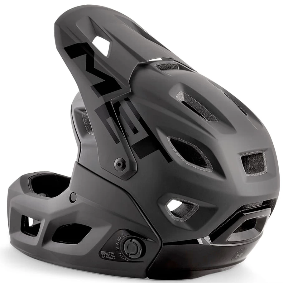 The 2022 MET Parachute MCR MIPS Helmet is a convertible full-face helmet developed for enduro, all-mountain and e-MTB riding. Parachute MCR is designed to be truly two helmets in one. The full-face has a stylish and aggressive look providing all-round protection, while the open face reflects the style of MET’s all-mountain helmets. MCR stands for Magnetic Chinbar Release and instantly converts from full to open face helmet and back. MCR is MET’s revolutionary system created in partnership with Fidlock. Featuring the MIPS brain protection system and complying with ASTM 1952-15/2032-15 (shell and chinbar) riders have the highest level of protection from linear and rotational impacts. In addition, MET’s unique flexible injected visor to avoid extra rotation of the neck in case of a crash. The BOA FS1 offers incremental adjustment forward and backward to deliver a precise and adaptable fit, while the belt runs 360° around the head to avoid any pressure points, optimizing comfort. It also offers 3 positions for vertical adjustment. 21 vents and the MET engineered internal air channeling work in synergy with the breathable chinbar to maximize the airflow at low and high speed. The chinbar is engineered to reach the optimal balance of stiffness and energy dissipation to give riders confidence when wearing the Parachute MCR.