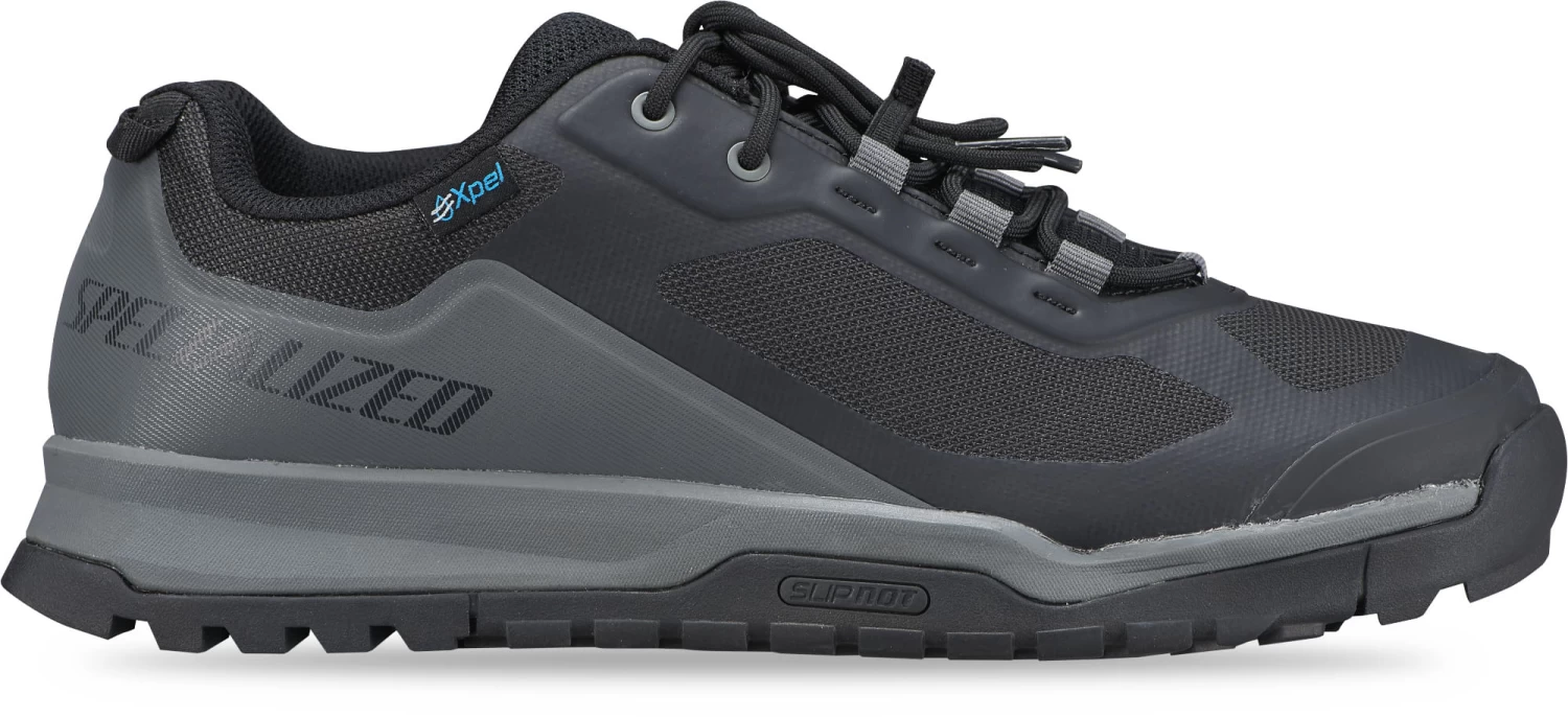 The 2022 Specialized Rime Flat Shoe is built to take on any mountain. Rocks, scree, shale, talus–it’s constructed to overcome any obstacle and get you to the most remote, craggiest trails out there. The outsole design pairs SlipNot ST (SuperTacky) rubber with aggressive heel and toe tread for exceptional pedal grip and superb off-bike traction when the trail becomes simply impassible on two wheels. The upper utilizes a seamless construction of fully-welded mesh and TPU for unparalleled durability. Lastly, the lightweight XPEL mesh lining sheds water to ensure creek crossings won’t weigh you down and it will dry out overnight so you’re ready to ride tomorrow.