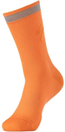 The 2021 Specialized Soft Air Reflective Tall Socks provide the perfect hit of color and reflectivity in order to keep you visible to motorists at any time of the day or night. These take the Road Tall socks super soft and compressive construction and add reflective yarns to the top edge. This part is made up of millions of glass beads that receive and reflect light back to the source, so this reflective band gives you an active, moving element to make yourself more visible to drivers.