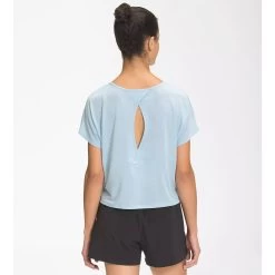 The versatile Womens Wander Crossback Short Sleeve is made for casual exploration. Stretchable fabric (thats 94% recycled), moisture-wicking technology and a keyhole detail on the back bring comfort and style wherever the path leads.